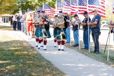 One privately funded project is the Avenue of Flags at the west entrance drive of the cemetery. Others include the Iowa's Fallen Heroes Monument, the glass enclosure of the committal shelter, the five service flagpoles encircling the shelter plaza, the bronze plaque at the shelter, and the majestic bronze eagle at the columbaria plaza. Corporate donors and hundreds of individual donors assisted with the funding of the Interstate 80 wall project.